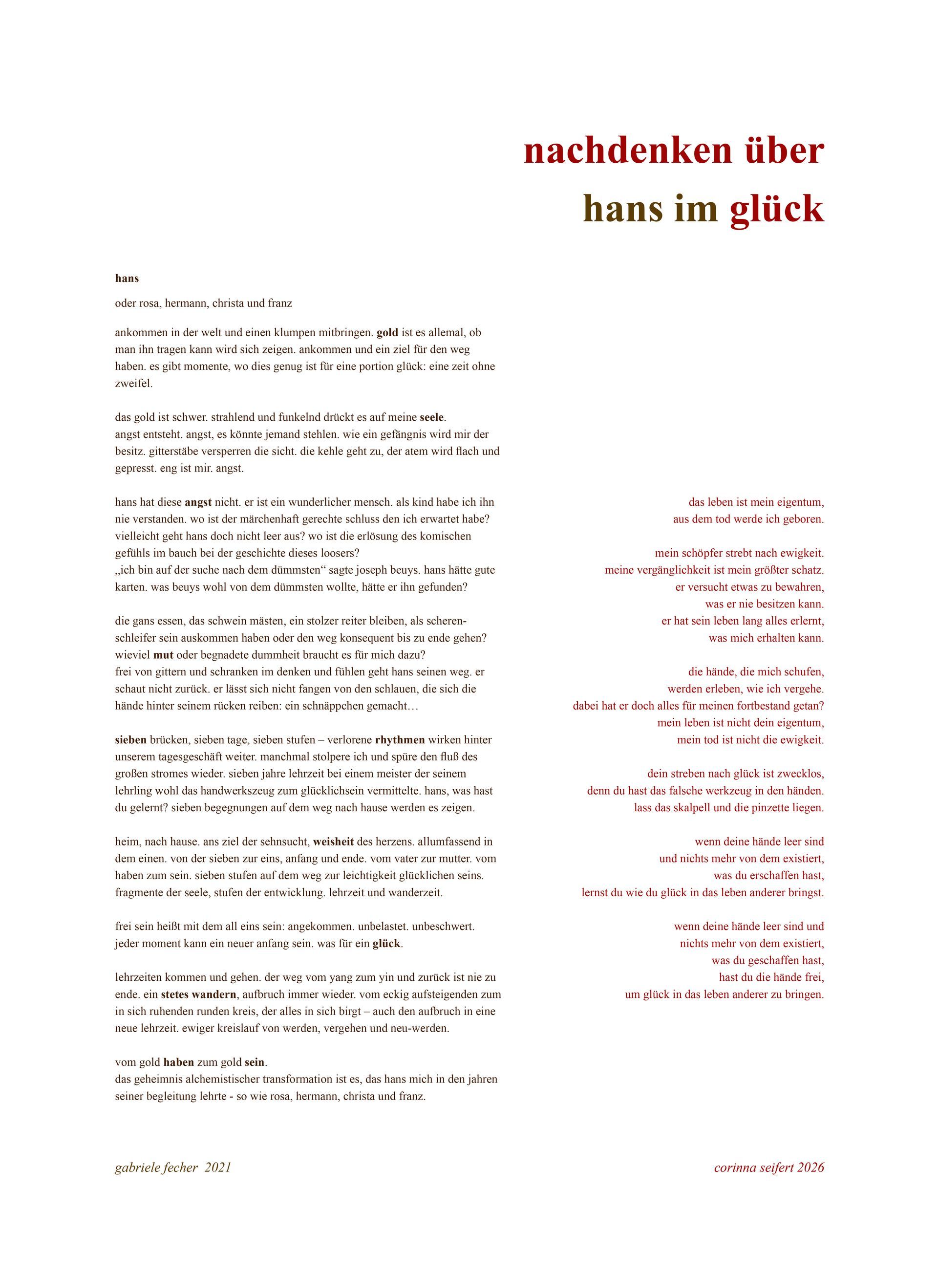 Wie schön das ist – einem fremden Menschen zu begegnen und zu merken, dass das Fremde sich in Nähe verwandeln kann. Vertrauen entsteht, so wie Hans im Glück vertrauensvoll mit dem Neuen, Unbekannten, Fremden umging.