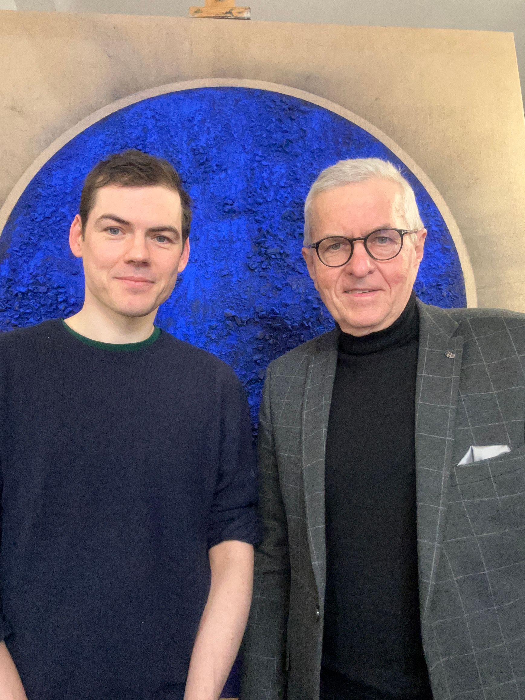 Unser BLIND DATE war zugleich ein FIRST DATE, also wirklich unsere erste Begegnung. Und trotzdem fehlte das sonst übliche Abtasten, die vorsichtige Suche nach Spuren von Kongruenzen im Denken und nach einer gemeinsamen Sprache für kreativen Diskurs. Ja, wie waren sehr rasch im intensiven Gespräch, begleitet von der Präsenz älterer und neuerer Arbeiten, die, wie in Ateliers üblich, eher ungeordnet in diesem Raum für eine besondere Atmosphäre sorgten. Aber die Bilder selbst rückten schon nach kurzer Zeit in den Fokus unseres Austauschs. Nachvollziehbar, ging es doch im Kern um die Substanz künstlerischer Äußerung, um die schwierige Suche nach geeigneten Motiven, das Spektrum stilistischer Positionierung, um Techniken und eingesetzte Materialien. Immer wieder führte uns das Gespräch aber auch wieder weg von den Bildern hin zu Fragen der Kunstvermittlung und Kunstförderung, zur ästhetischen Bildung und zur Relevanz des gesellschaftlichen Diskurses über Kunst. Wir mussten uns nicht wechselseitig versichern, dass Kunstschaffen und Kunstrezeption gleichermaßen Sensibilitäten verlangen, die in einer Gesellschaft verloren zu gehen drohen, die immer mehr von Oberflächlichem bestimmt scheint und der ein ethischer Grundkonsens erkennbar abhandenkommt. Und wir waren uns nach zwei intensiven Stunden einig, dass Johannes Gräbners so verletzlicher PALE BLUE DOT aus Bitumen, Kohle und blauem Pigment auf Jute mit seiner imaginativen Kraft genau die richtige Wahl für diese Ausstellung ist.