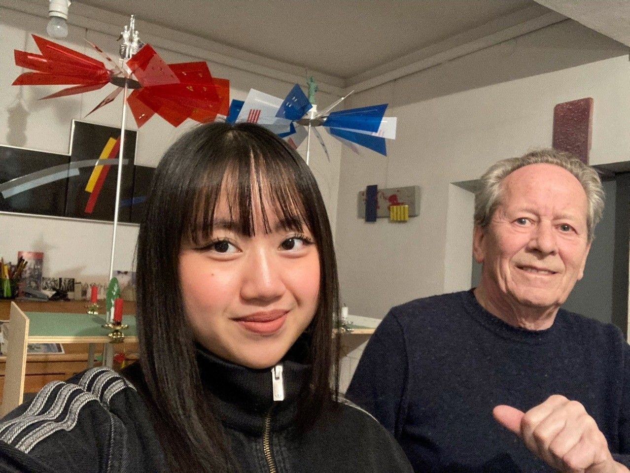 Als ich am 29.01.26 dann zu dir gekommen bin, war ich überrascht, dass du dir gemerkt hast, dass ich eher der Kaffeetrinker bin als Teetrinker. Wir haben zusammen entspannt einen Kaffee getrunken und ich durfte viele Geschichten aus deinem Leben hören. Du hast mir deine Werke gezeigt, von denen ich sehr begeistert bin. Es hat mir viel Spaß gemacht ein Selfie mit dir zu machen.